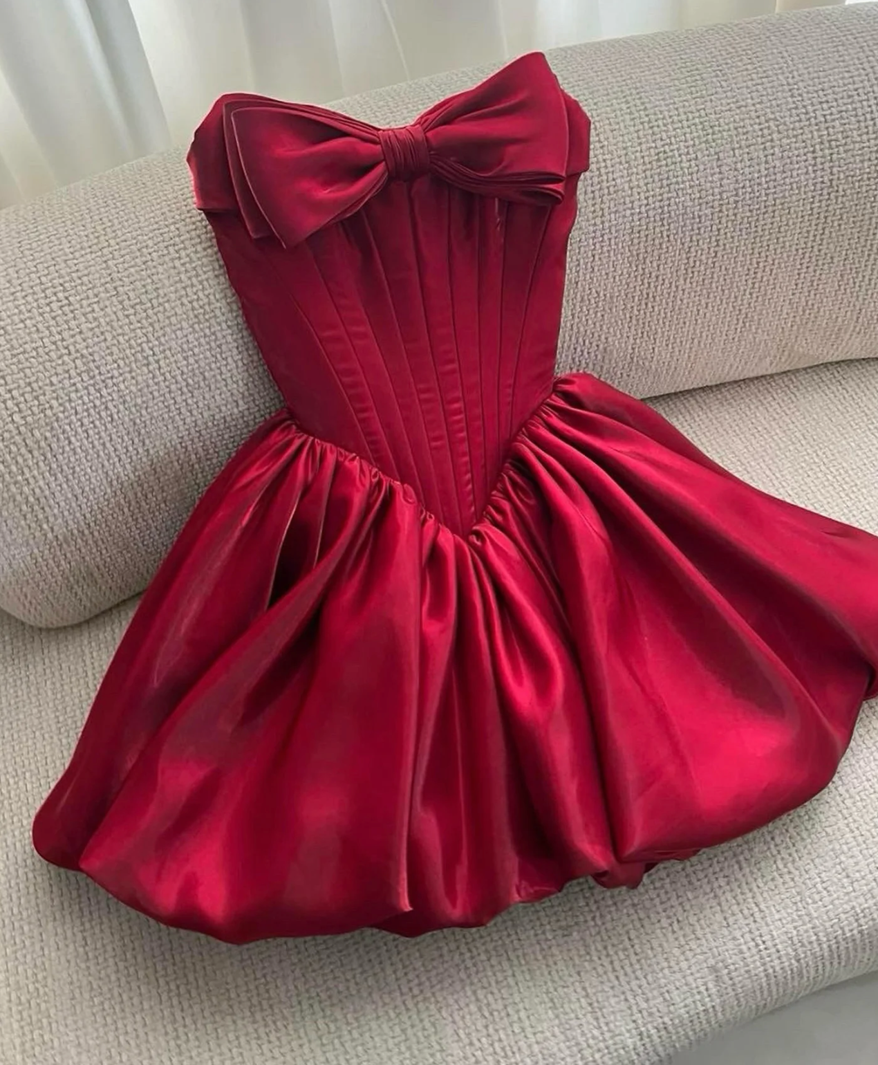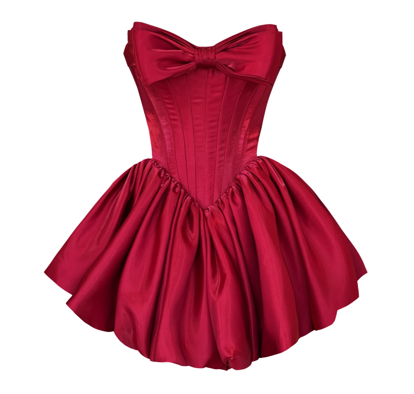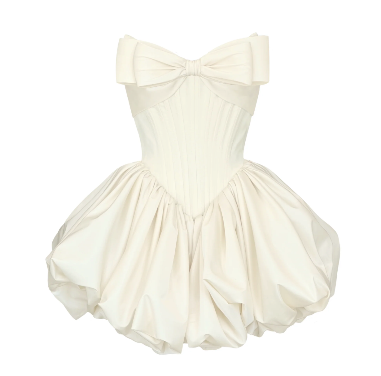 Desire captures the essence of bold romance with its strapless silhouette and playful above-the-knee cut. This mini dress features delicate ruffles and an A-line princess silhouette that flatters every figure, while intricate lace-up detailing adds an edgy, customizable touch. Perfect for the bride who refuses to play it safe—sleek, daring, and undeniably unforgettable.