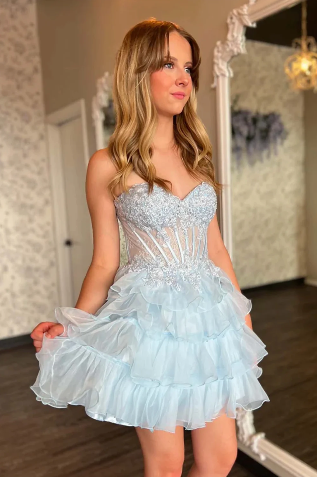 Port de Paix commands attention with its bold A-line silhouette and daring sweetheart neckline that frames the collarbone with confidence. This knee-length evening dress features a structured corset closure for a sculpted, flattering fit that moves with you. Perfect for prom, homecoming, or any occasion demanding presence, the tiered design adds dimension and drama. Fully customizable to match your vision, this mini gown transforms classic elegance into something unforgettable.