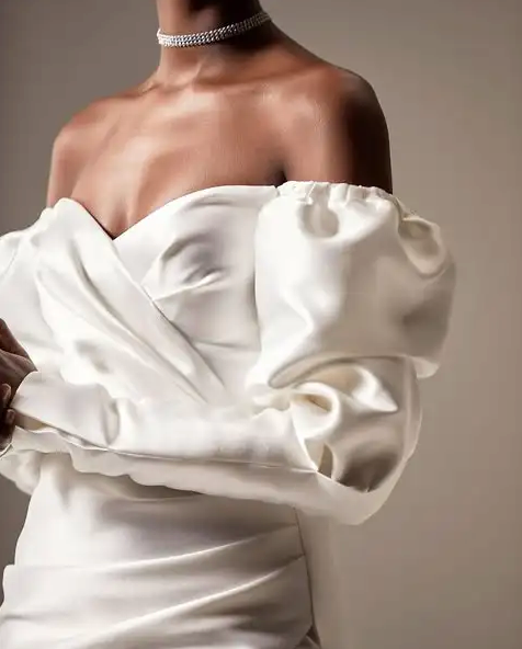 Step into the spotlight with the Zane Party Mini, a daring off-the-shoulder short dress designed to captivate. Crafted from luxe satin with a slight stretch, its A-line silhouette paired with puff sleeves and a sweetheart neckline creates a bold yet elegant statement perfect for engagement parties. Embrace confidence and charm in every move.
